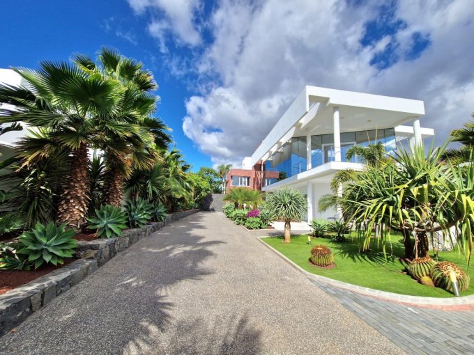 Nestled in La Caleta, the Canary Islands’ most coveted address, this impeccably modern villa is set within its own lush, landscaped botanical gardens and offers breathtaking coastal and ocean views. From the moment you arrive through the electric gates and along the sweeping driveway, you’ll appreciate the exceptional design and meticulous craftsmanship throughout. Spanning three levels—each serviced by a private elevator—the villa features six generous bedroom suites (two per floor) and nine exquisitely appointed bathrooms, all finished with top-tier materials such as Villeroy & Boch ceramics.